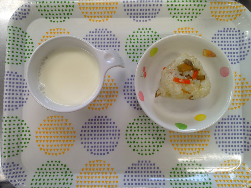 【きょうのおやつ】牛乳 きんぴらおにぎり