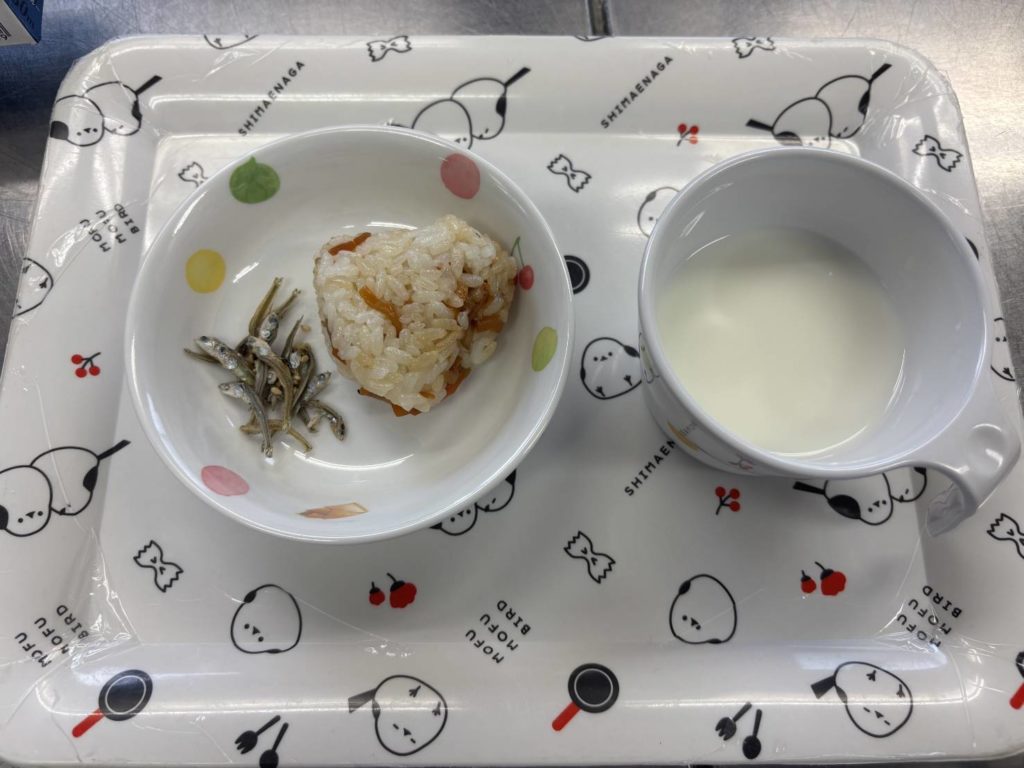 【午後おやつ】牛乳 きんぴらおにぎり ごまいりこ(ぱんだ組以上)