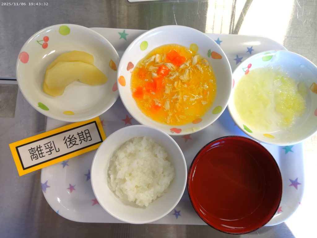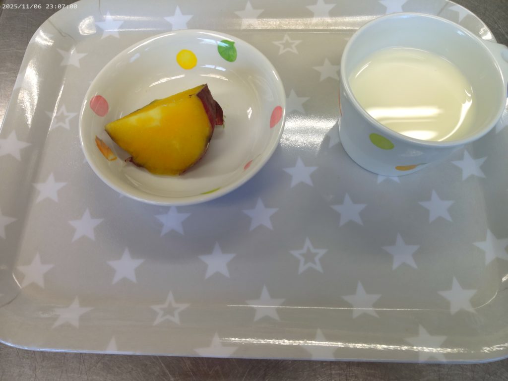 ホーム虹の子保育園今日の給食 11月21日(金)の給食 2025年11月21日 【今日の給食】かぼちゃのカレーライス フレンチサラダ スープ りんご 【離乳食 後期】 おかゆ 鶏肉とかぼちゃのほくほく煮 キャベツのお浸し だし汁 りんご煮 【午後おやつ】 牛乳 蒸かし芋 【離乳食 後期】 ミルク さつま芋のコロコロ煮