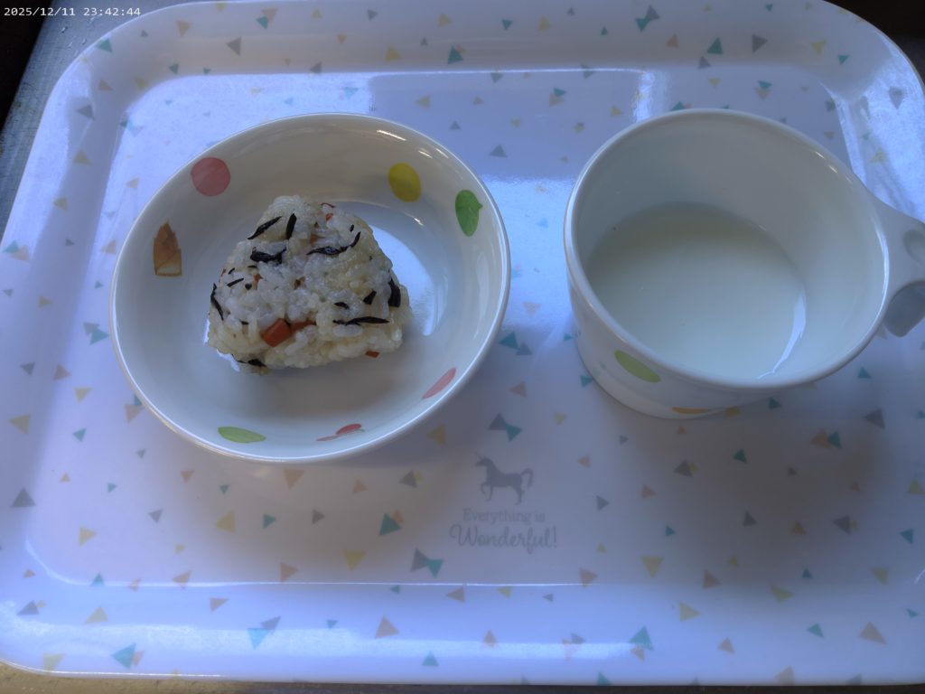 【離乳食 後期】おかゆ 鶏肉と玉ねぎのトマト煮 ブロッコリーと人参の茹で野菜 みそ汁 ヨーグルト