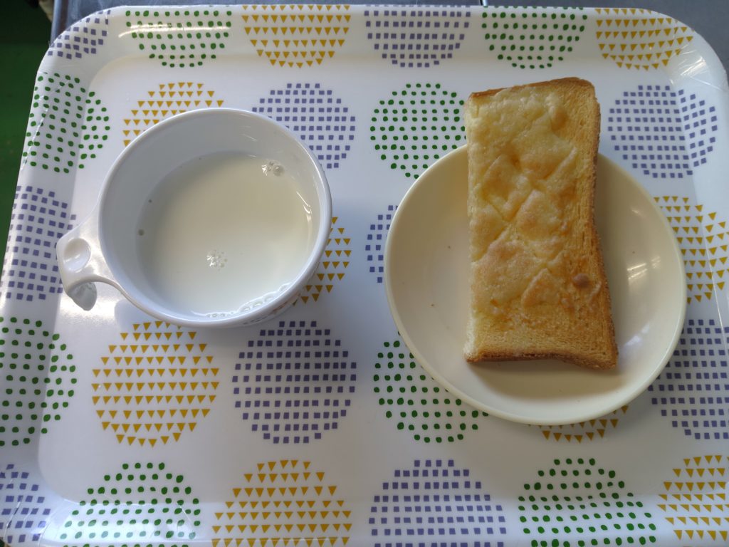 【朝おやつ】牛乳 ハーベスト(りす組のみ)、ベビーせんべい(あひる組のみ)