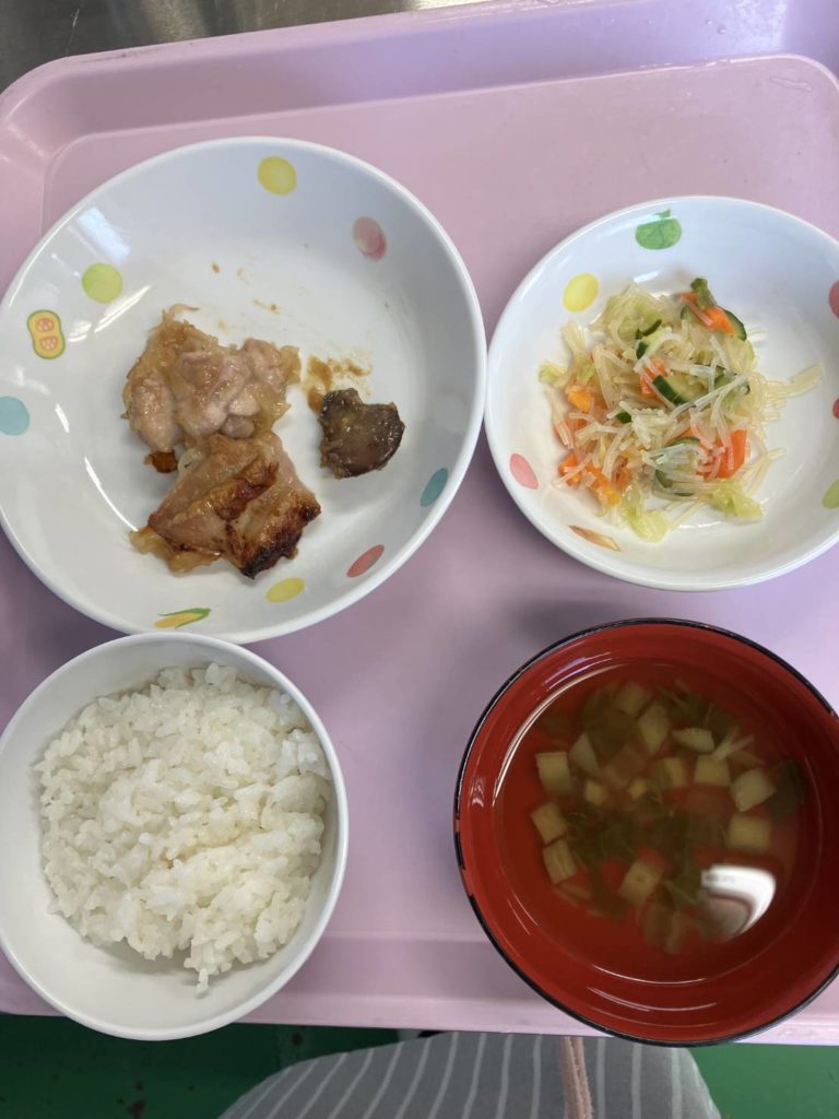 ホーム虹の子保育園今日の給食 8月20日(水)の給食 2025年8月20日 【今日の給食】ご飯 鶏のから揚げ 鶏レバーの味噌煮 春雨の和え物 すまし汁 【離乳食 後期】軟飯 鶏肉と人参の煮物 鶏レバーペースト キャベツのお浸し すまし汁 【午後おやつ】牛乳 高野豆腐のお好み焼き