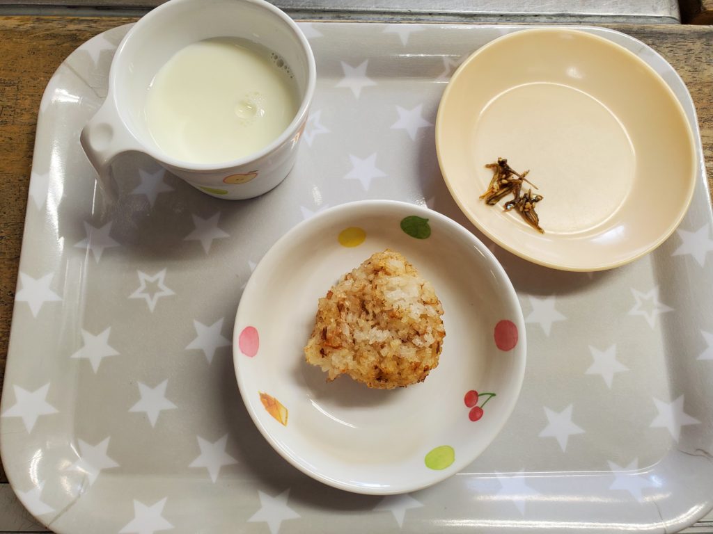 【午後おやつ】牛乳 焼きおにぎり (3歳以上児のみ)ごまいりこ