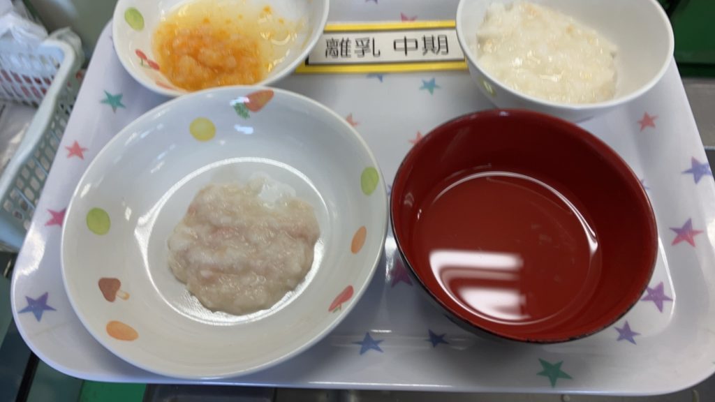 【離乳食 中期】納豆おかゆ 白身魚の煮つけ キャベツと人参のだし煮 だし汁