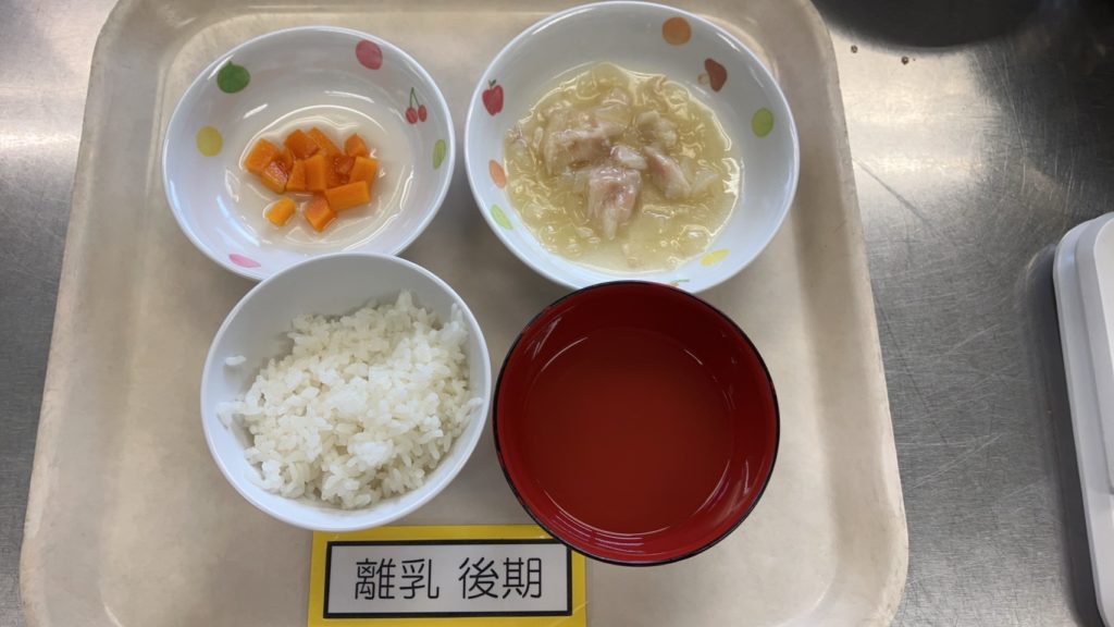 【離乳食 後期】軟飯 白身魚の煮つけ 人参のだし煮 すまし汁